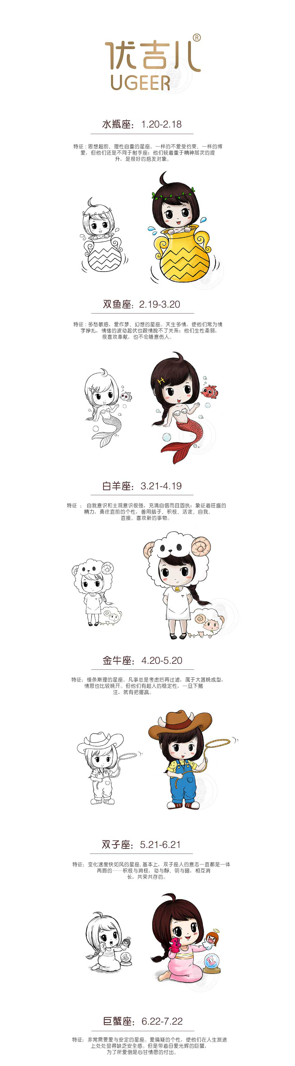 項目方案:優(yōu)吉兒品牌深挖個性特征,選擇從星座角度入手形成品牌認知,豐富品牌文化內(nèi)涵的同時,提煉出具有系統(tǒng)性及個性化的形象載體,凸顯品牌多元化特質(zhì),配套于渠道宣傳,有助于品牌知名度的提升。