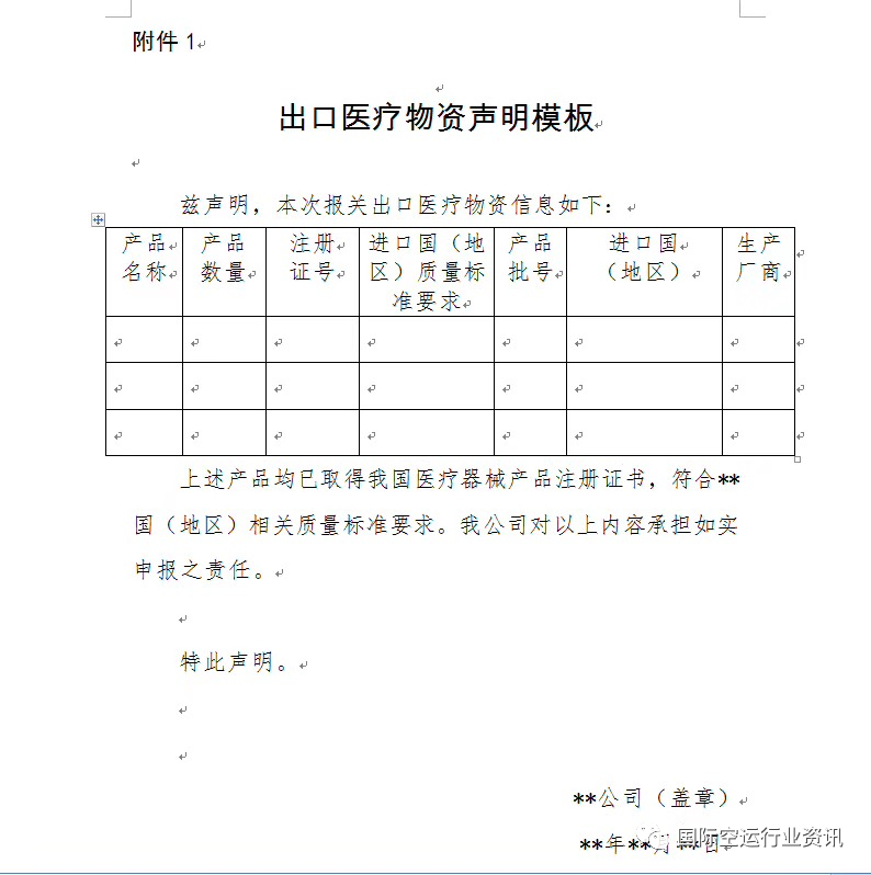 (出口醫(yī)療物資聲明:表格不能留空,表頭不要有模板兩個字,蓋生產(chǎn)銷售單位公章,每項(xiàng)必須填滿)