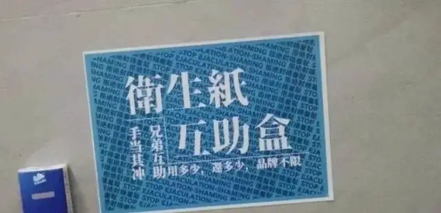 除了互助活動(dòng)本身,話題度最高的的是兩件事,第一件是中國(guó)政法大學(xué)里男廁外設(shè)立了“衛(wèi)生紙自助盒”,暗示男性自慰也應(yīng)該“去羞恥”。