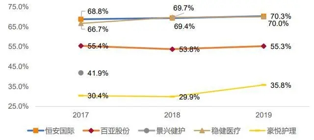 從女性衛(wèi)生用品業(yè)務的毛利率來看,恒安國際和穩(wěn)健醫(yī)療的毛利率一騎絕塵,2019年均在70%左右。百亞股份次之,2019年為 55.3%。景興健護的商業(yè)模式為研發(fā)貼牌,2017年毛利率為 41.9%。豪悅護理的商業(yè)模式為 ODM代工,2019 年毛利率為 35.8%。
