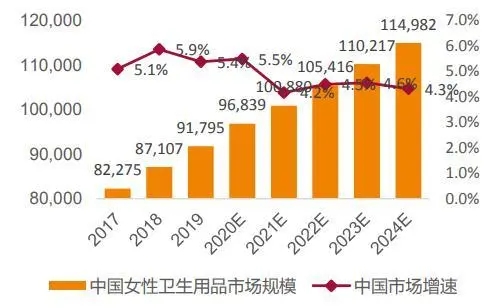 2017-2024年中國女性衛(wèi)生用品市場規(guī)模量價拆分
