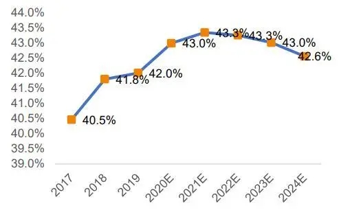 2017-2024年中國女性衛(wèi)生用品市場規(guī)模全球占比