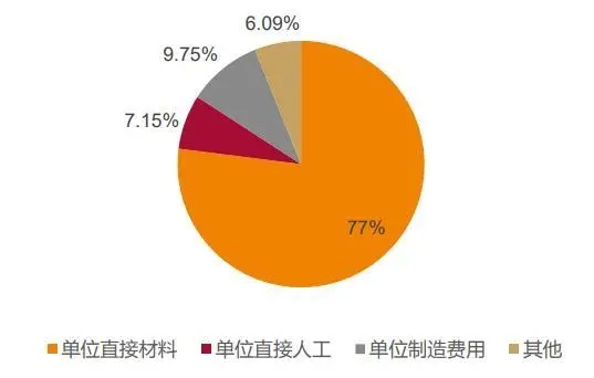 原材料成本占到單位營業(yè)成本的 77%