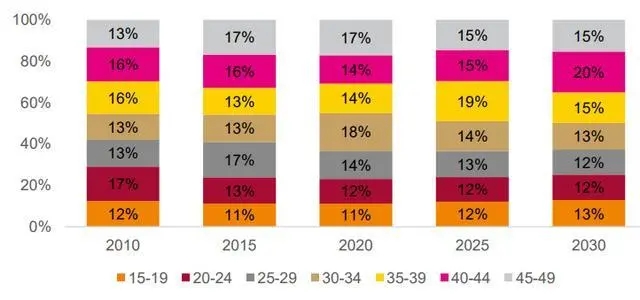 15-49 歲適齡女性人口年齡結構