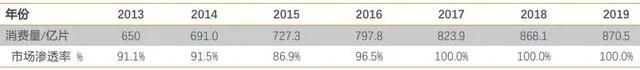 2013 至 2019年中國衛(wèi)生巾普及率(估測)