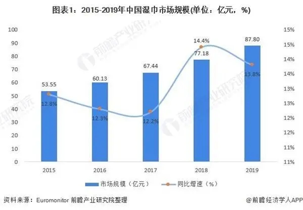 近年來,我國濕巾行業(yè)發(fā)展迅速,增速遠(yuǎn)超全球。同時,2019年底疫情的爆發(fā)進(jìn)一步催生了國人對濕巾的需求,后疫情時代行業(yè)有望進(jìn)一步突破。