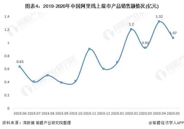 另一方面,2019年底全國疫情的爆發(fā)極大地刺激了濕巾的消費(fèi)需求。2020年1-5月,阿里濕巾線上銷售額均在1億元左右,2020年4月銷售額更是高達(dá)1.32億元,2020年2月環(huán)比增速達(dá)到113.63%。此次“新冠疫情”較2003年非典更加嚴(yán)重,進(jìn)一步激化了國人對衛(wèi)生健康的關(guān)注。同時,隨著我國經(jīng)濟(jì)積極向好,居民消費(fèi)能力及意愿不斷提升,企業(yè)不斷探索制造多元化的濕巾,后疫情時代我國濕巾行業(yè)發(fā)展前景更為明朗,預(yù)計(jì)2025年市場規(guī)模有望達(dá)到182億元。