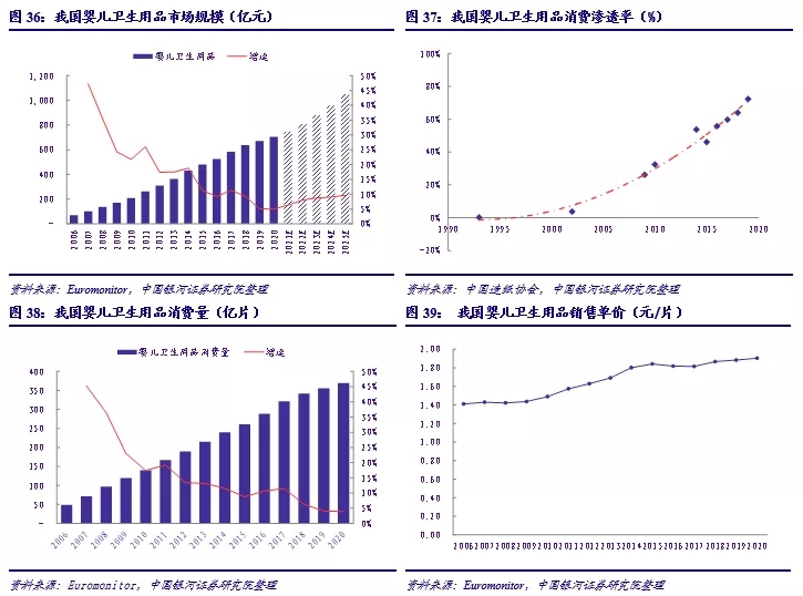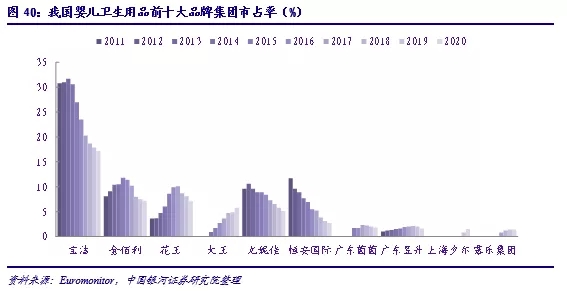 目前市場競爭格局的變化說明我國嬰兒衛(wèi)生用品市場尚未成熟,仍存在發(fā)展的較大空間,在消費(fèi)升級(jí)和市場體量擴(kuò)張下外資企業(yè)和國內(nèi)新銳企業(yè)都有規(guī)模增長、擴(kuò)張市場份額的機(jī)會(huì)。短期內(nèi)我國嬰兒衛(wèi)生用品市場的行業(yè)集中度可能不會(huì)快速回升,新銳品牌的加入推動(dòng)了產(chǎn)品升級(jí)也給行業(yè)帶來了活力和更多競爭,國產(chǎn)品牌具有本土化的電商營銷能力與新渠道把控力,以及適應(yīng)性更強(qiáng)的新品迭代能力,因此和外資品牌的拉鋸戰(zhàn)可能會(huì)持續(xù)進(jìn)行。長期來看,參考女性衛(wèi)生用品市場的發(fā)展路徑,市場成熟后外資品牌的品牌效應(yīng)會(huì)逐步顯現(xiàn),未能成功樹立品牌影響力的國產(chǎn)新銳品牌或?qū)⒅鸩酵顺鍪袌?,行業(yè)屆時(shí)將再次向龍頭集中聚攏。
