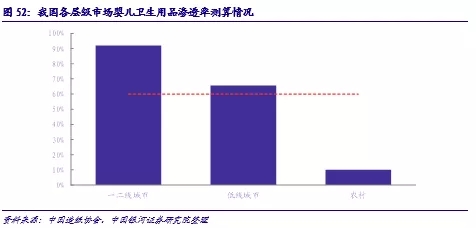 2.三四線城市以及農(nóng)村市場滲透率的提升。根據(jù)現(xiàn)有數(shù)據(jù)測(cè)算,各地的嬰兒衛(wèi)生用品滲透率存在明顯差異,三四線等中低消費(fèi)等級(jí)城市與農(nóng)村地區(qū)嬰兒紙尿褲的滲透率仍然有待提升,由此可以帶來整體消費(fèi)量的提升空間。