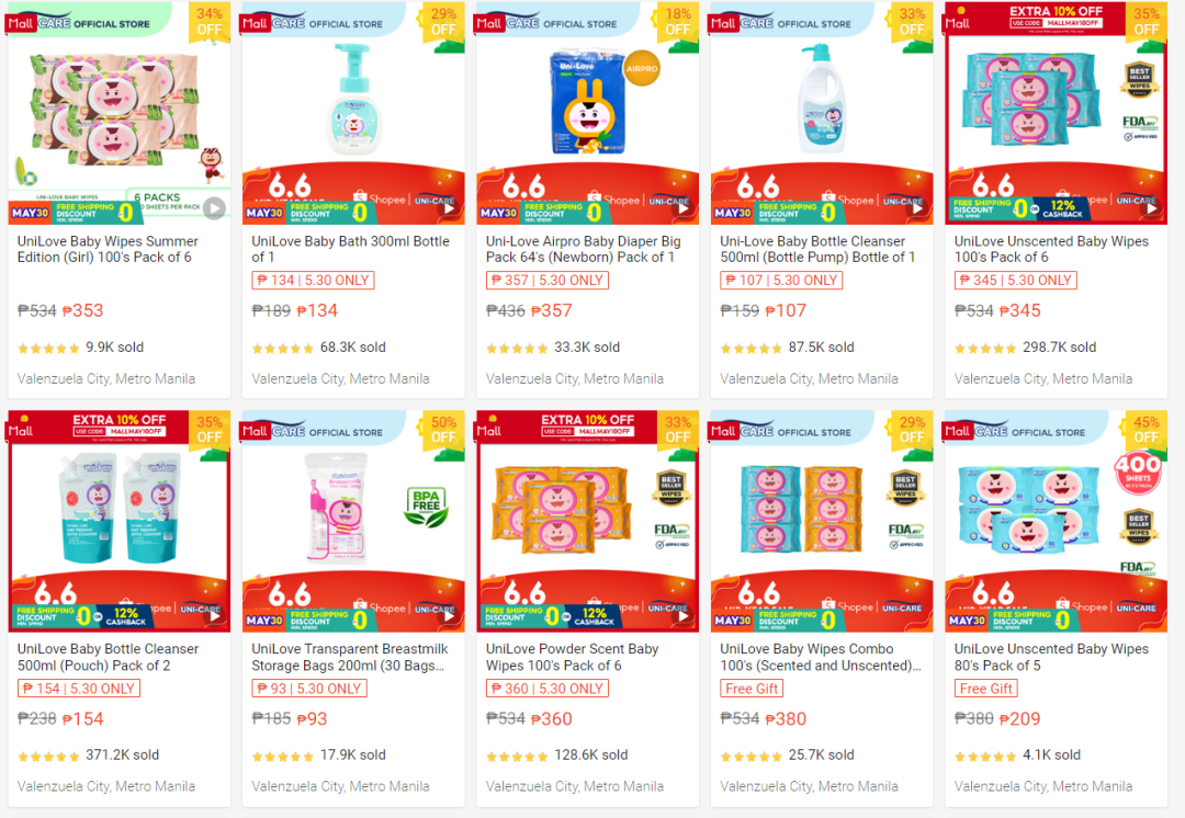 由于該品牌入局較早,有了一定的粉絲基礎(chǔ),以及品牌影響力,所以在shopee和TikTok Shop平臺銷量可觀,品牌將旗下的產(chǎn)品分割成不同的子品牌,便于寶媽消費者查看用品,而shopee站點的首頁可以發(fā)現(xiàn),該品牌目前推出多種活動,并且近期正在準備shopee的6.6大促。