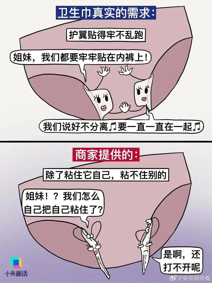 【#別拿消費(fèi)主義那套來做衛(wèi)生巾#】想不通,衛(wèi)生巾這種每個(gè)月都要用的東西,怎么會(huì)做得又貴又難用。商家以為我需要:加冰、加熱、加玻尿酸、粉嫩包裝、明星代言……實(shí)際我需要的:干凈衛(wèi)生、護(hù)翼好貼、安全不漏、價(jià)格適中。衛(wèi)生巾是日用品,別搞消費(fèi)主義輕奢那一套。(繪圖.阿彬的漫畫生活)#有種女性貧困叫月經(jīng)貧困#